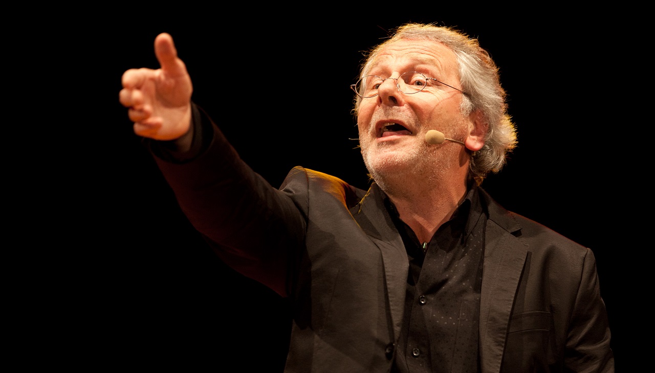 Mit deftigem Witz, trockener Satire und feinsinnig-hintergründigen Monologen wird er einen verbalen Stepptanz präsentieren - Realsatire und Klamauk, manchmal um die Ecke gedacht und oft auch mitten zwischen die Augen.